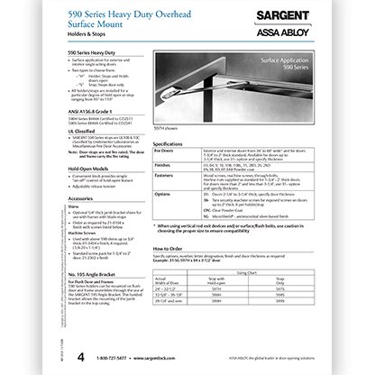 Sargent overhead stops/holders are designed to protect door and hardware from heavy traffic commonly found in commercial and institutional applications.
