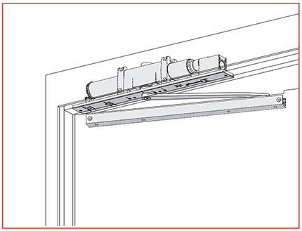 • Standard 4310ME series closer shipped with a 24V or 120V cylinder (please specify) on a mounting plate, metal cover, Swing-Free arm, track, track roller, and wood and machine screw pack
