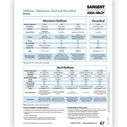 No tools are needed, just the cylinder key. Designed for wide stile doors, in aluminum or fire rated steel, the 980 lockable mullion is the easy way to provide wide openings with a SARGENT exit device.