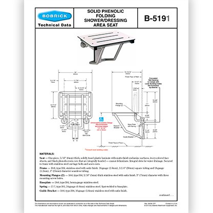 CAUTION NOTE: L-shaped Folding Shower Seats: B-517, B-518, B-5181 L-shaped folding shower seats, when properly installed and maintained, have sufficient strength to support a single user up to a maximum static load of 360 lbs (163 kg). In the interests of safety and the protection of end users, these seats should not be used to support weights exceeding 360 lbs (163 kg) . Failure to abide by this warning may result in seats malfunctioning, potentially causing minor to moderate injury. TOTAL WEIGHT ON SEAT MUST NOT EXCEED 360 LBS (163 KG).