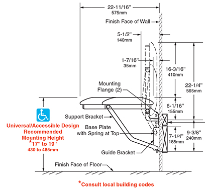 5⁄16" thick solid phenolic seat; field-reversible; compact design