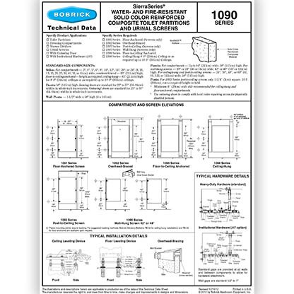 The SierraSeries® 1090 from Bobrick boasts a scratch, dent, and impact-resistant system in a variety of solid colors that are clear through the composite material. Three mounting configurations suit any application.